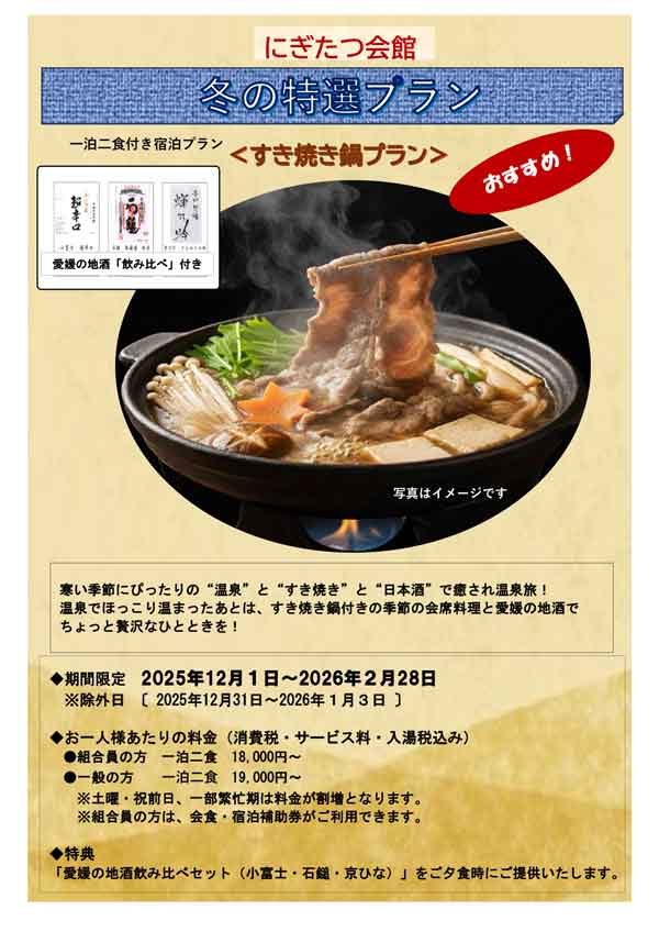 【期間限定】冬の特選プランすき焼き鍋プラン 1泊2食付宿泊プラン