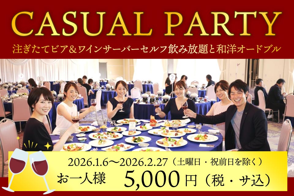 Bunquet & Meeting plan会食プラン CASUAL PARTY 注ぎたてビア&ワインサーバーセルフ飲み放題と和洋オードブル2026.1.6~2026.2.27 (土曜日・祝前日を除く) お昼の会食プラン お得なお昼のプランはじめました。料理(昼膳・コーヒー付)+飲み放題(2・3時間) 昼食会プラン〔幕の内弁当〕 お昼のプランはじめました。料理(幕の内弁当)要予約 スポーツ少年団応援プラン スポーツ少年団の卒団式・祝勝会などにぜひご利用くださいませ。 ご法宴プラン【偲膳】 故人を偲ぶ和やかなひととき・・・・にぎたつ会館が心に残るご法要のお手伝いをさせて頂きます。 プランをすべて見る